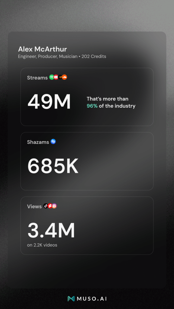 Since expanding his freelance career, Alex has built a reputation as a skilled engineer, producer, and mixer. His recent collaborations include working with a variety of artists and bands across alternative, indie rock, and pop genres, while continuing to deliver high-quality production, arrangement, and mixing work.